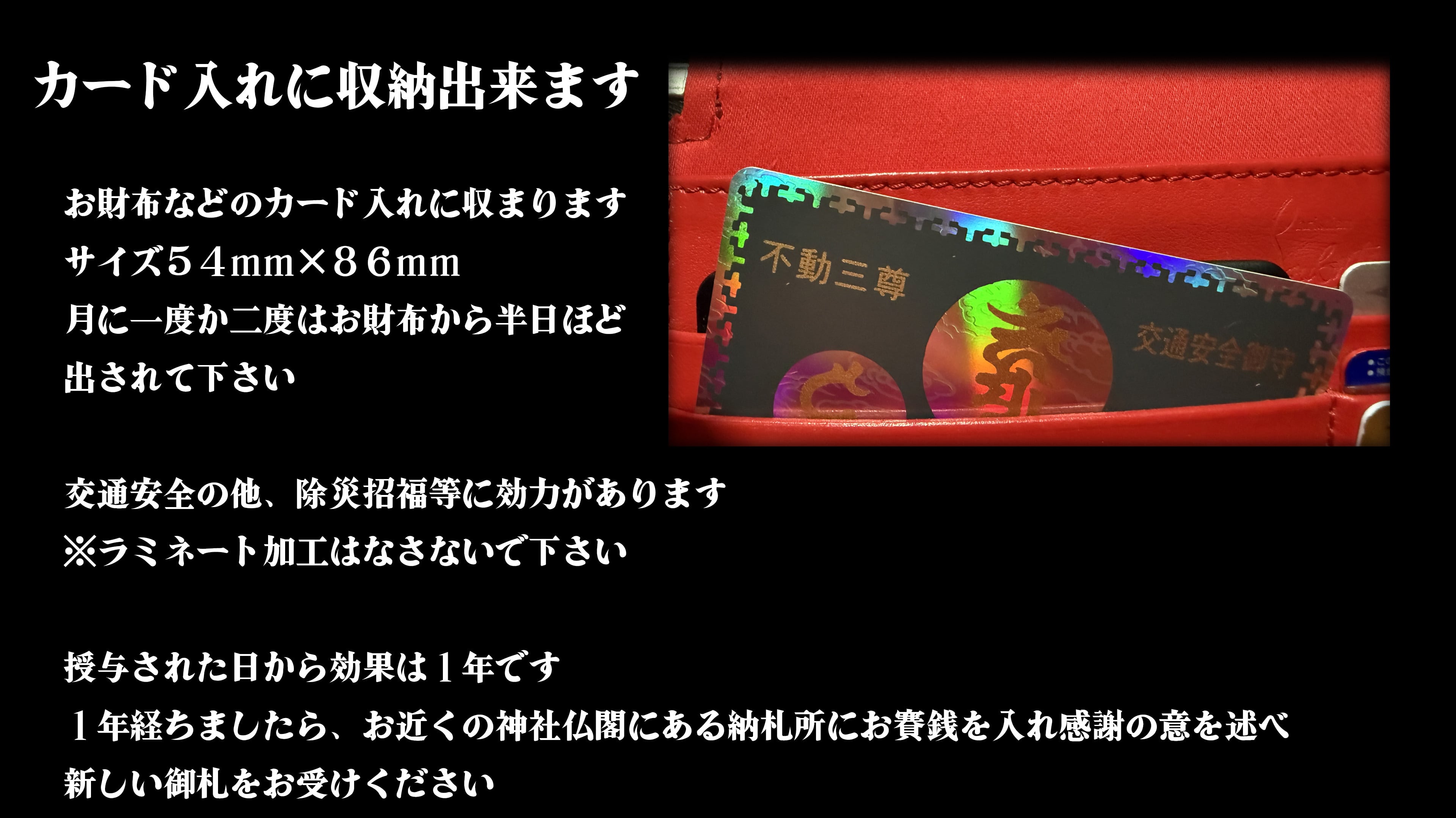 カードサイズですので財布・パスケースに入れておけば、いつも不動三尊様に守られます。