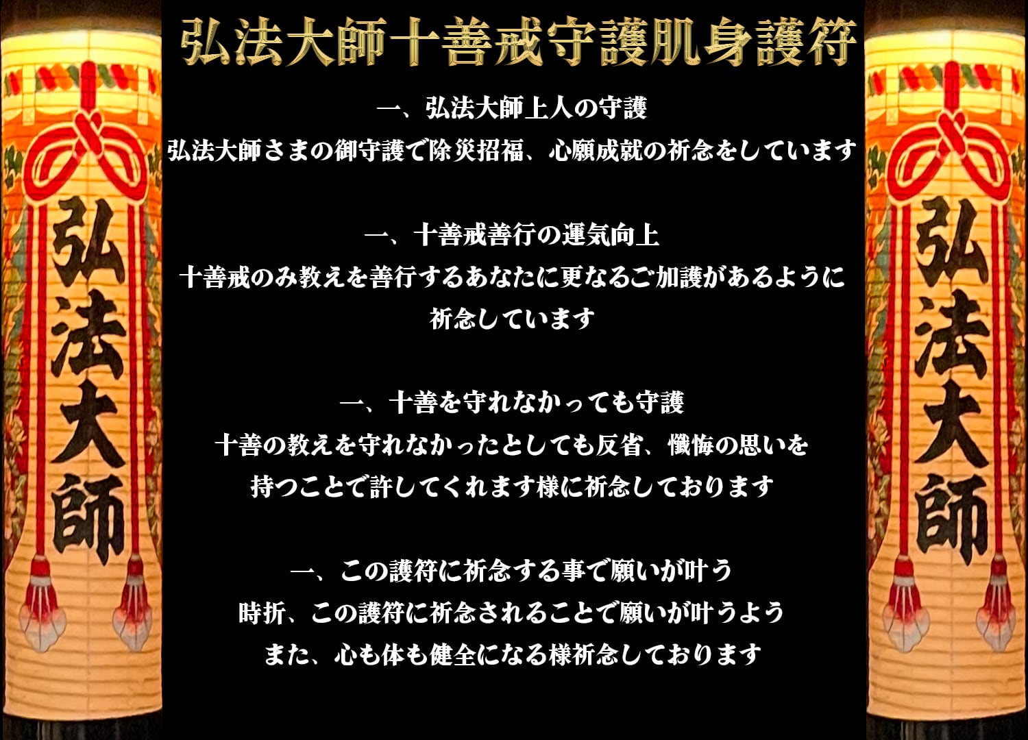 苦難から幸運を【弘法大師十善戒守護肌身護符】浄書なし