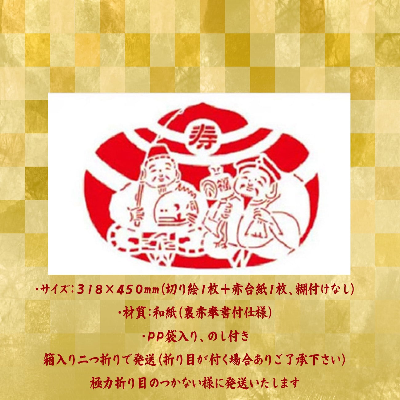 ・サイズ:318×450mm(切り絵1枚+赤台紙1枚/糊付けなし)
