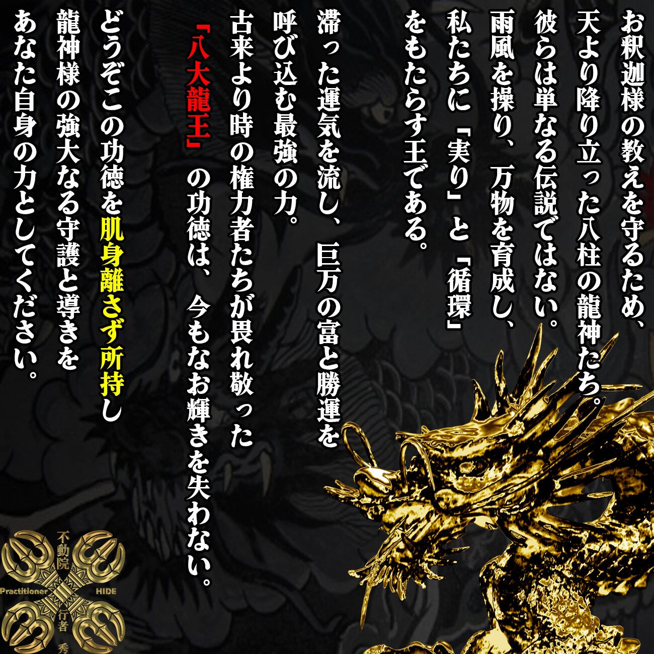 法華経に登場する仏法の守護神であり、龍神の最高位「八大龍王」の力を宿した秘符です。