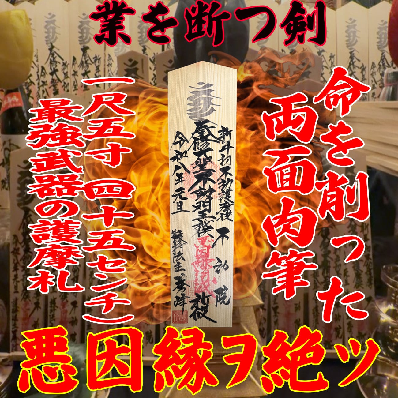 残僅かです【あなたの悪因縁を消滅させる】一尺五寸(45cm)不動明王護摩札|発送前追加祈祷ナシ【令和八年】 / Authentic Goma Talisman (Standard)