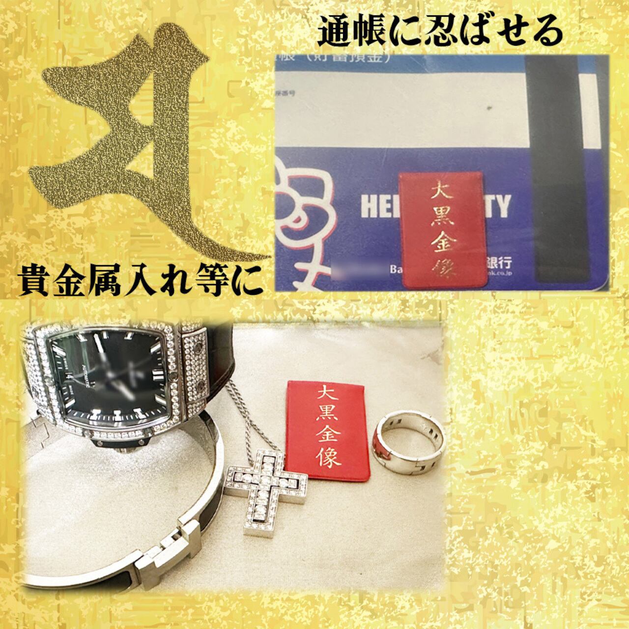 2. Golden Daikoku Amulet (in Red Pouch) A small golden amulet modeled after Daikoku, the god of wealth.