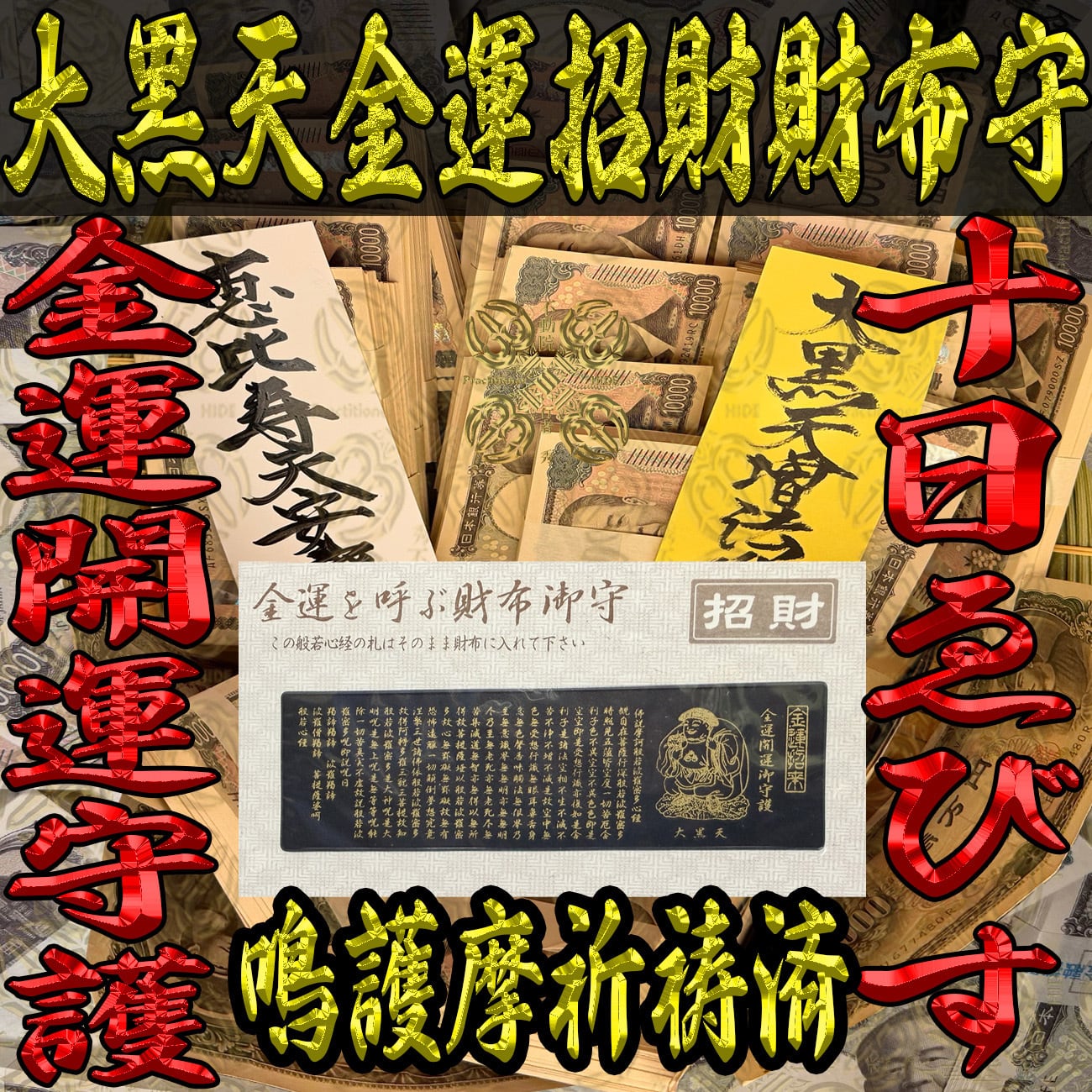 金運向上】十日ゑびす三日厳修:大黒天 金運招財財布守り(鳴動護摩加持済)浄書なし / Golden Daikoku Wallet Amulet: Consecrated Ritual