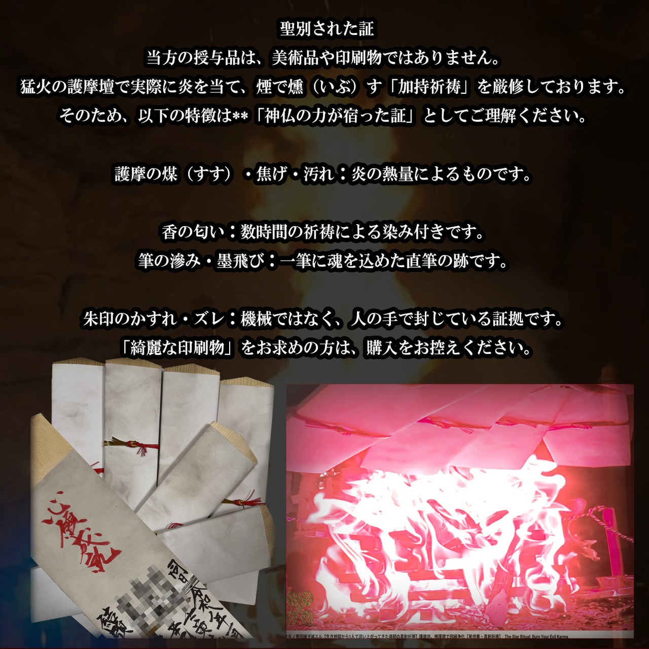 本札は、すでに護摩壇の猛火をくぐり抜け、これ以上焼けば灰になる寸前まで「火の力」が宿っております。