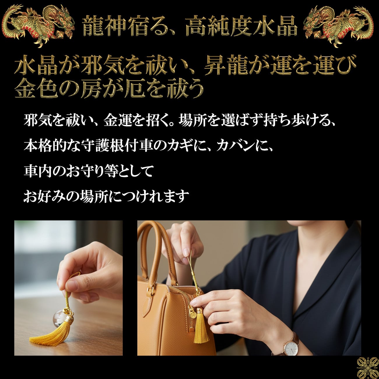 龍王神守運・本水晶根付|金運・厄除け・因縁切り|昇龍チャーム【浄書あり】 Genuine Crystal Dragon God Amulet (Netsuke) | Blessed by Japanese Buddhist Monk