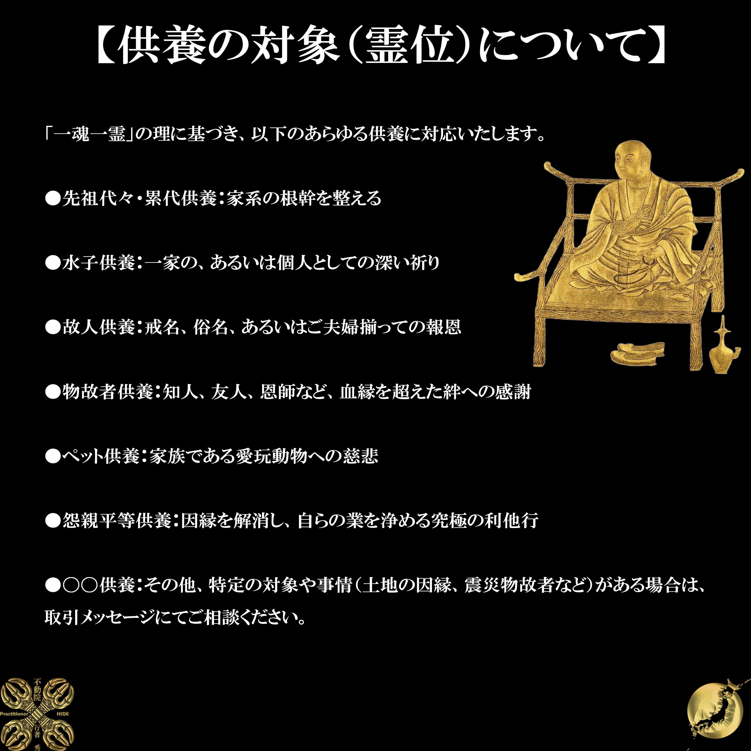 ご購入後、取引メッセージにて「供養する霊位(法名・戒名・俗名など)」をお知らせください。