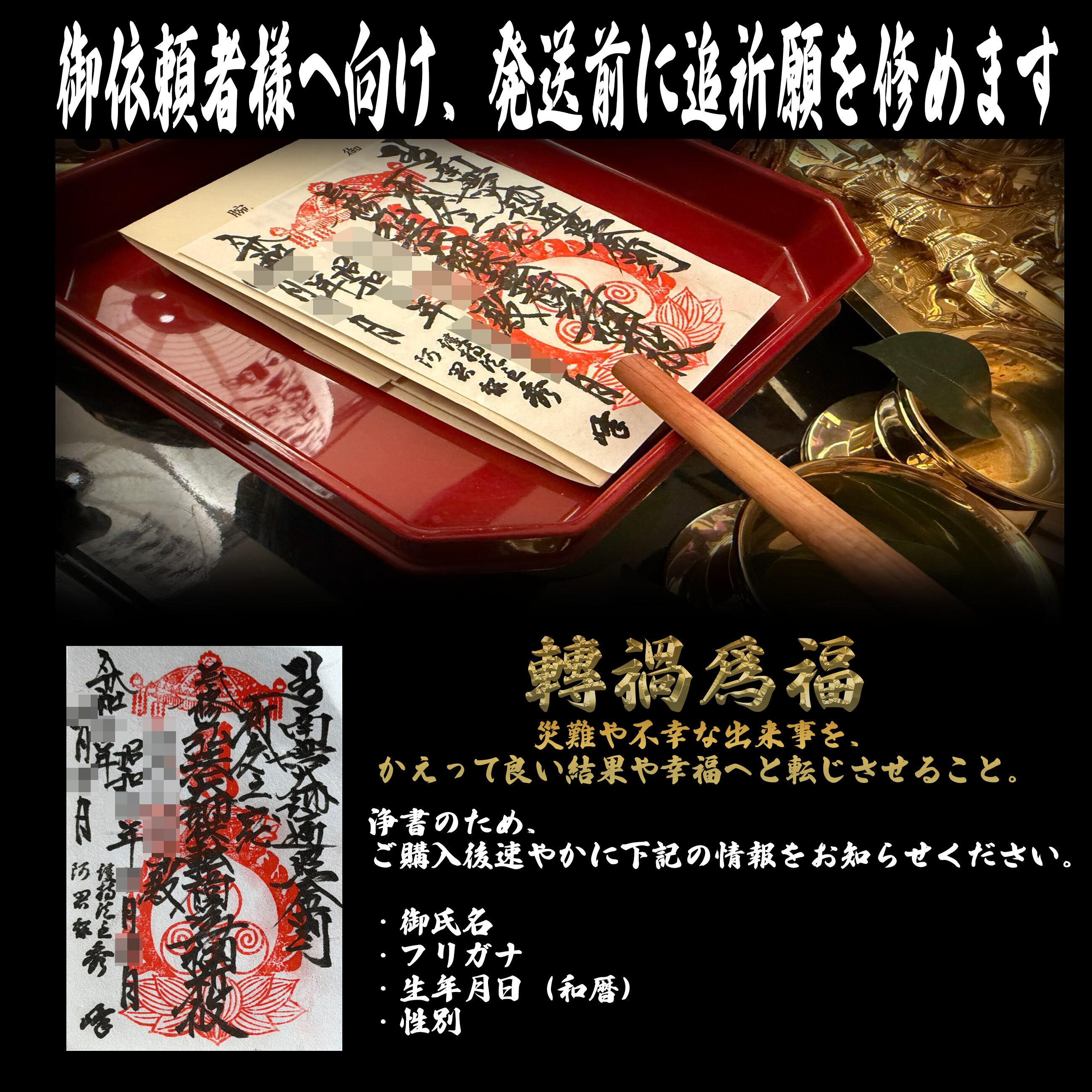 ご希望の方には、お届け前に追祈祷し、あなただけの守護具として覚醒させる祈祷(浄書)を行います。