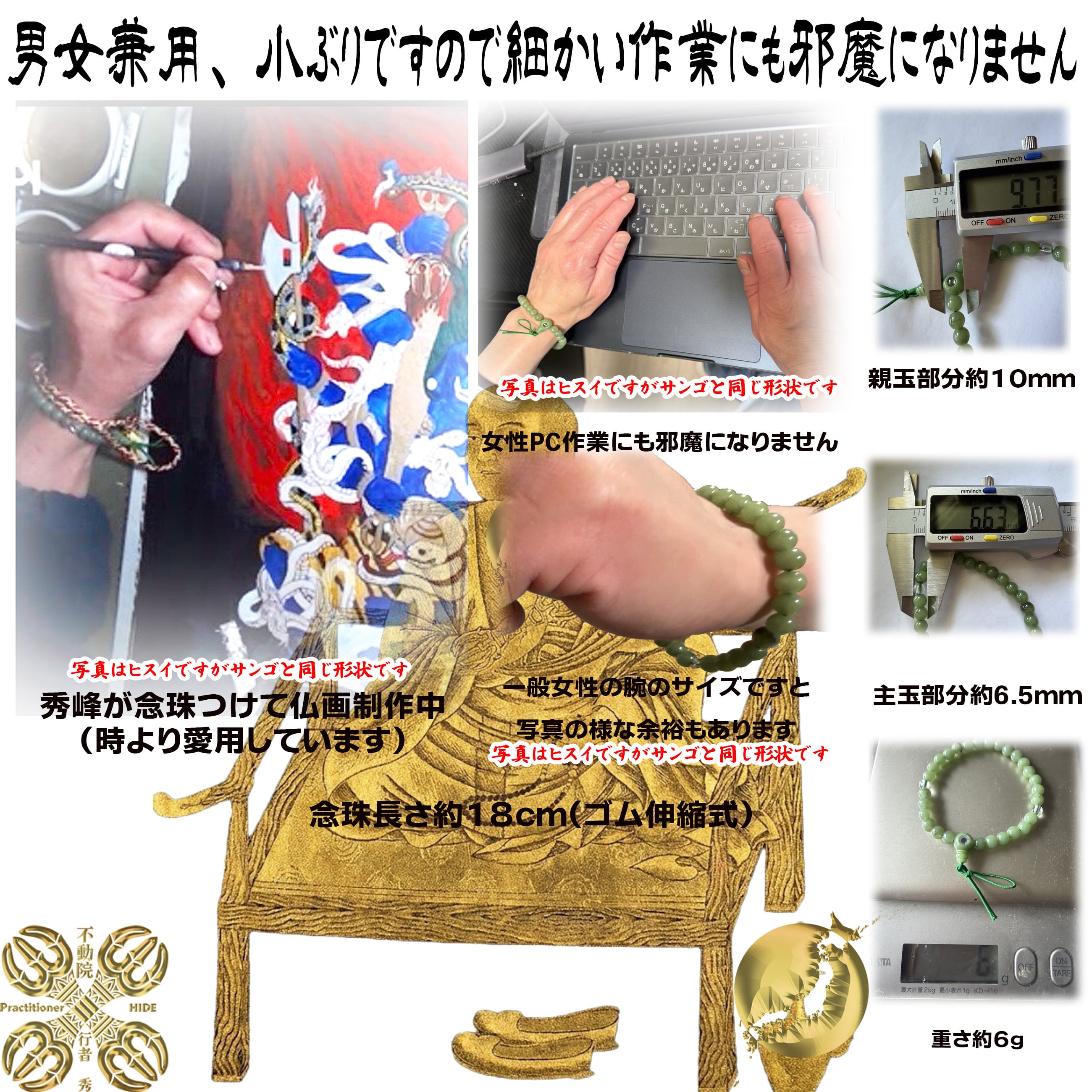 落ち着きのある翡翠(ヒスイ)色の色合いは身に着ける者の心を静め、一切の虚飾を排した実直な造りが静かなる威厳を示しております。本品には以下の功徳を授けるべく祈祷を修めております。