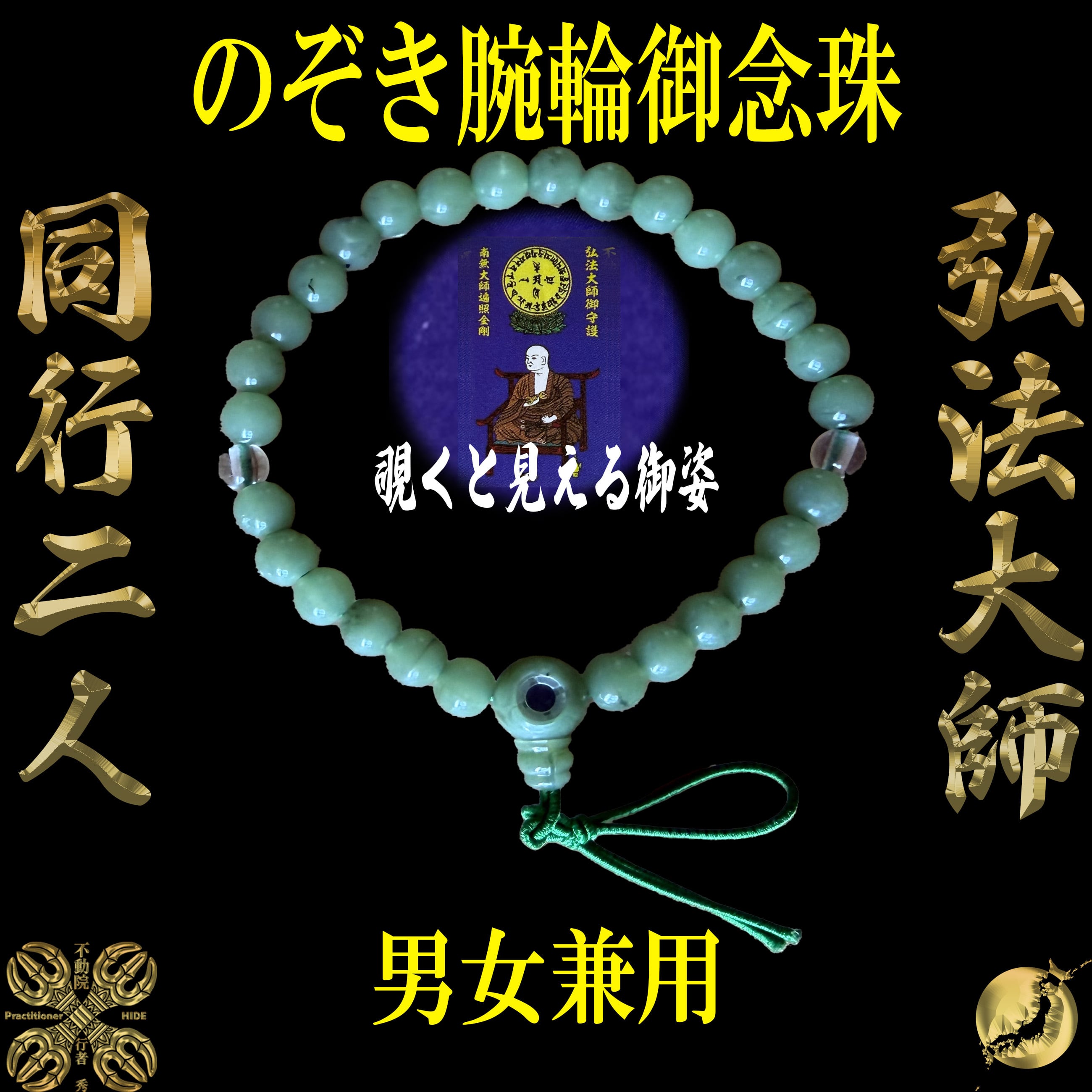 弘法大師 のぞき腕輪御念珠 翡翠(ヒスイ)色 対人関係解消 開運 邪気退散【浄書あり】【Kobo Daishi】Amulet Bracelet Jade Green - Spiritual Protection