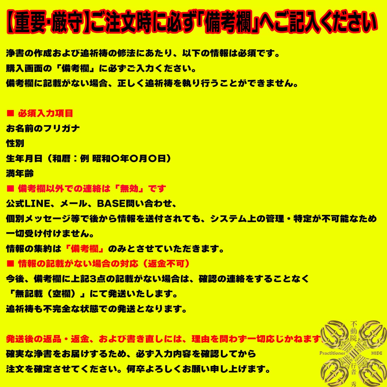 ※当BASEショップにおいては、情報の集約と確実な浄書(轉禍為福の修法)のため、ご購入画面の「備考欄」へ以下の5項目のご入力を必須とさせていただきます。