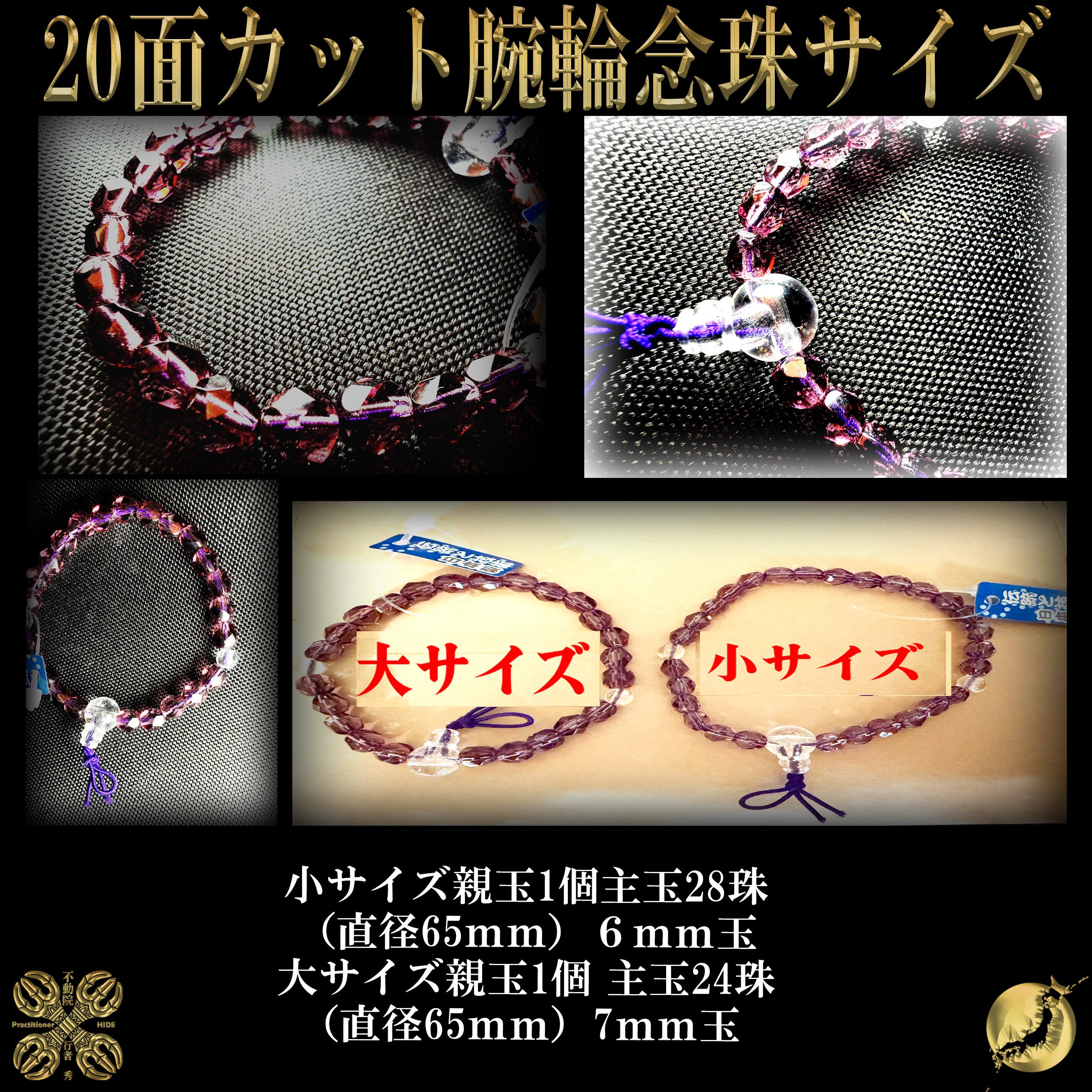 本品は、大日如来・不動明王・弘法大師の真言三尊による守護を祈祷した20面カット腕輪念珠(小サイズ)でございます。開運厄除、身体健全の祈祷が施されております。