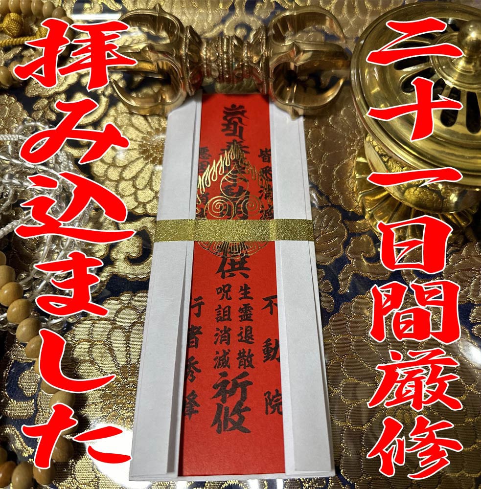 生きた人間の生霊を退散、呪いを消滅させる祈祷をしています。